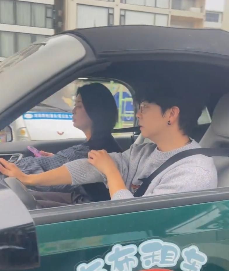 副驾驶坐着一位短发女性,两人并排等红灯时,她侧身与他交谈,他原本紧锁的眉头这才微微舒展,神情柔和了几分。