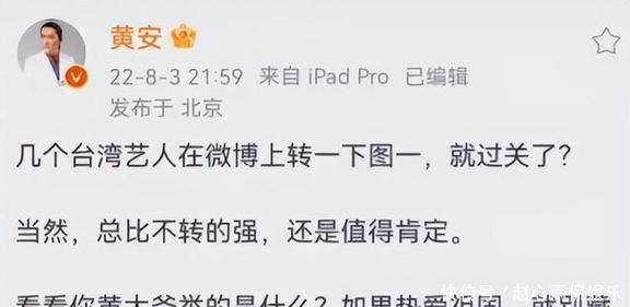 他的立场一直特别坚定:一个中国是底线。这可不是说着玩的空话,早年间他就写过《我是中国人》这首歌,那手稿到现在还时不时拿出来晒晒呢。再后来,他开始在微博上举报那些涉嫌“台独”的艺人。先是钟屿晨事件,他还亲自跑到国台办去实名举报,国台办回应说“深表敬意和谢忱”。